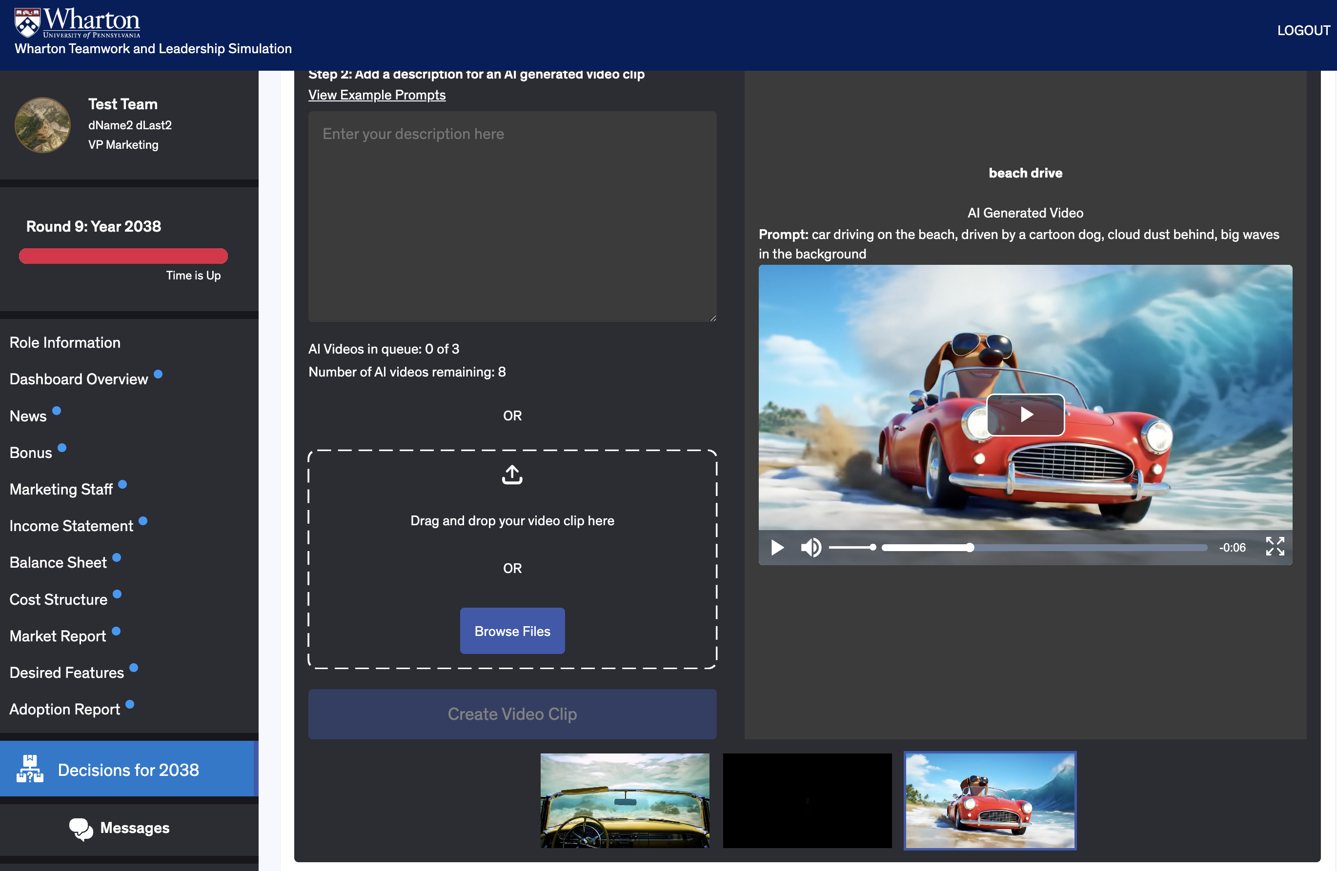 Wharton wanted to introduce a creative marketing component, asking teams to produce a short video commercial for their company. While earlier versions of the simulation were highly effective for analytical decision-making, they were designed at a time when creative expression in business simulations was necessarily more constrained.